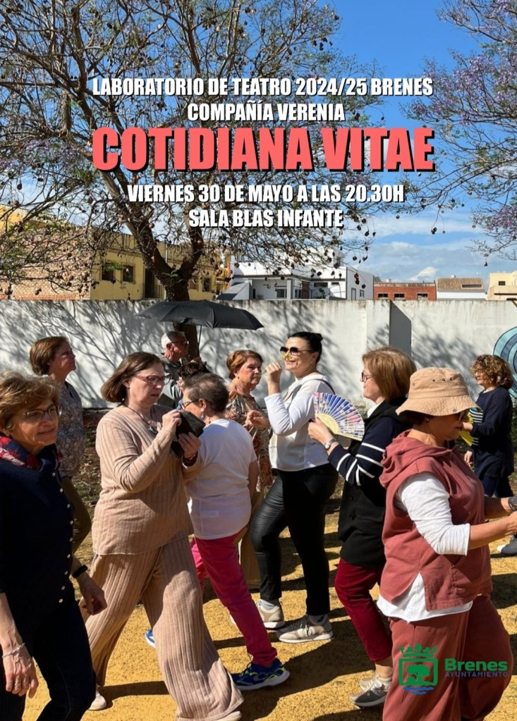 Desde hace dos años, el laboratorio de teatro de Brenes se ha convertido en un espacio de encuentro, juego y creación colectiva. El grupo, formado mayoritariamente por mujeres y bautizado el año pasado como VERENIA, ha dado lugar a un proceso lleno de aprendizaje compartido. Con ellas he creado dos espectáculos: Si vas a Brenes, echa pan pa que cenes y Cotidiana Vitae, ambos nacidos del deseo de contar lo que somos desde lo cotidiano, lo cercano y lo vivo.
